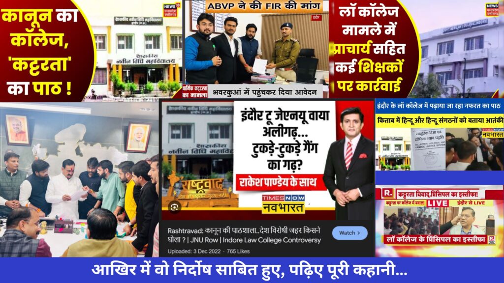 दिसंबर 2022 में इंदौर के शासकीय लॉ कॉलेज के प्राचार्य डॉ. इनामुर रहमान को “लव जिहाद”, “इस्लामी कट्टरवाद” और “तुष्टिकरण” जैसे शब्दों से नंगा किया गया।