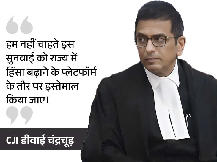 - 8 मई : पहली बार हुई सुनवाई के दौरान CJI डीवाई चंद्रचूड़ की बेंच ने कहा था कि यह मानवीय संकट है। विस्थापितों के पुनर्वास, राहत कैंपों में दवाओं और खाने-पीने जैसी जरूरी चीजों का इंतजाम हो। साथ ही राज्य में धार्मिक स्थलों की हिफाजत के लिए भी कदम उठाए जाएं।